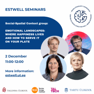 At the seminar, Kadri Leetmaa, Anto Aasa, and Jürgen Pikk from the Social-Spatial Context Research Group, and Kairi Kreegipuu from the Brain and Cognition Research Group will speak.